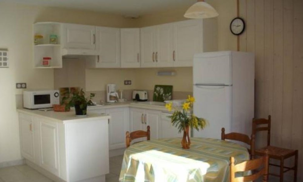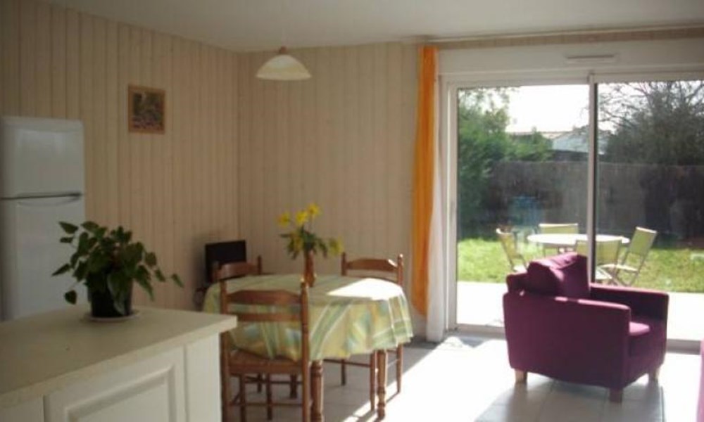 Salon/séjour avec cuisine aménagée ouverte, 2 chambres (1: 1 lit 160x200, 2: 2 lits 90x190), s.d.e, WC indépendant, cellier. Equipements supplémentaires : compartiment congélateur, accès Wifi, équipement complet bébé. Compris: chauffage aérothermie, électricité. Non-compris: draps, linge de toilette/de maison et taxe de séjour. Pornic à 10 km.