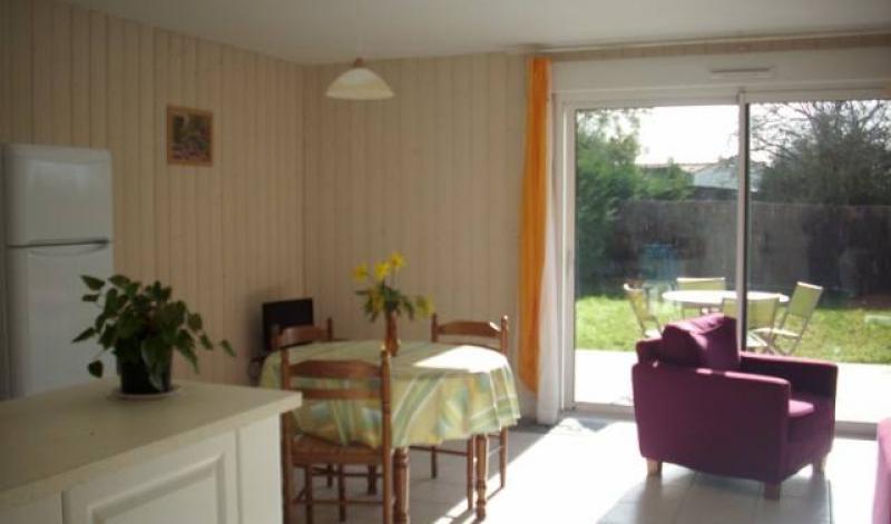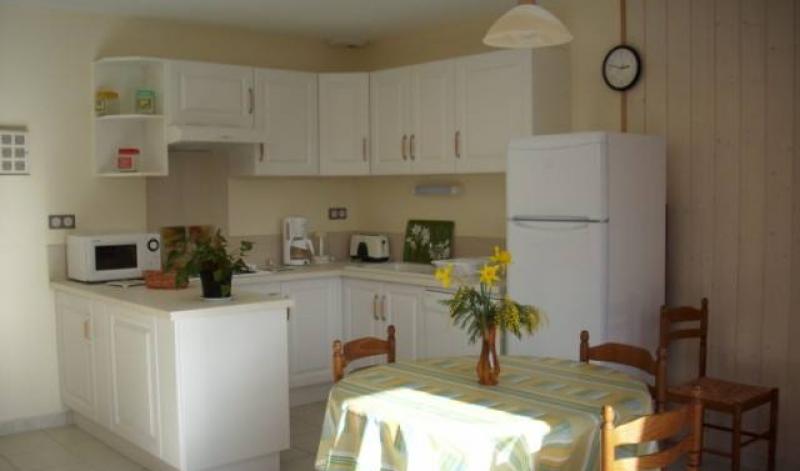 Salon/séjour avec cuisine aménagée ouverte, 2 chambres (1: 1 lit 160x200, 2: 2 lits 90x190), s.d.e, WC indépendant, cellier. Equipements supplémentaires : compartiment congélateur, accès Wifi, équipement complet bébé. Compris: chauffage aérothermie, électricité. Non-compris: draps, linge de toilette/de maison et taxe de séjour. Pornic à 10 km.