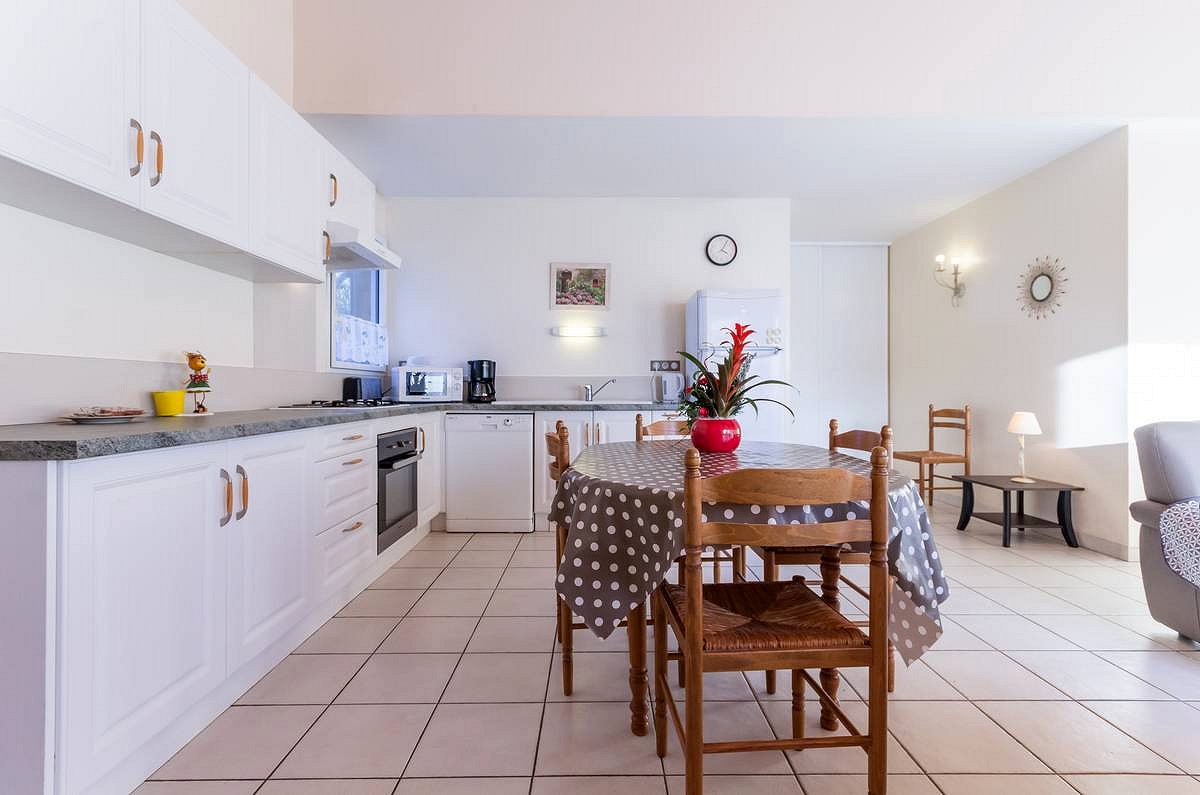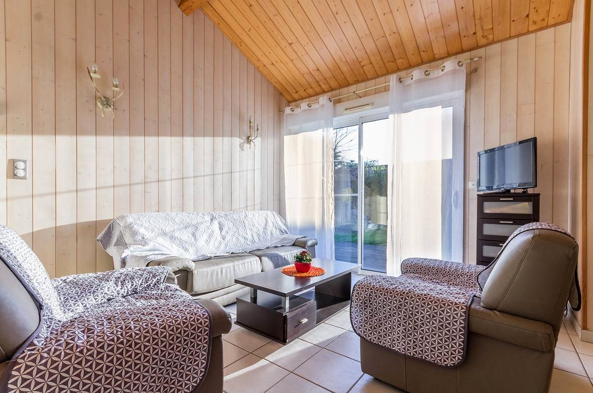 Salon/séjour avec cuisine aménagée ouverte, 3 chambres (1: 1 lit 160x200, 2: 2 lits 90x190, 3: 2 lits 90x190 avec s.d.e privative), s.d.e/wc, cellier. Equipements supplémentaires: congélateur, accès Wifi, équipement complet bébé. Compris: chauffage aérothermie, électricité. Non-compris: draps, linge de toilette/de maison et taxe de séjour. Pornic 10 km.